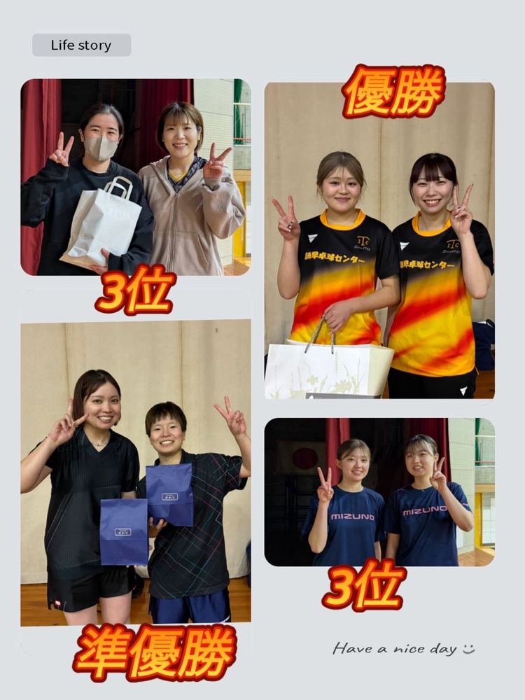 | 優勝 | 松橋 愛桜・野田 有那 (諫早卓球センター) |