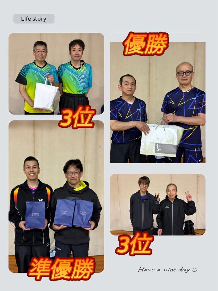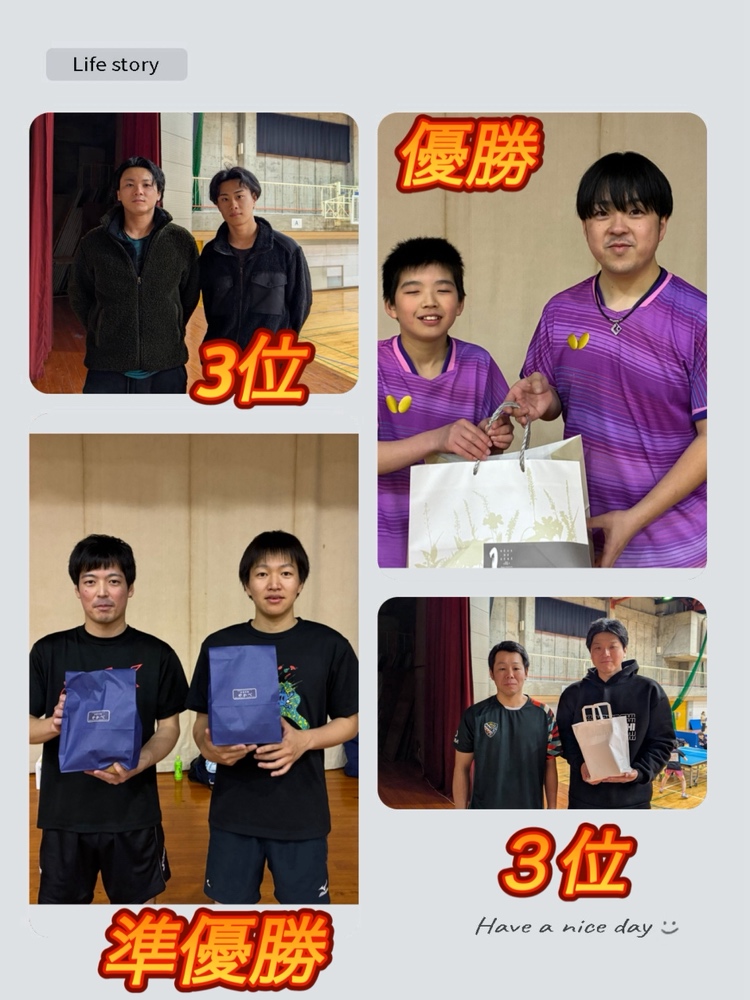 | 優勝 | 大浦 哲平・芝原 圭吾 (森卓球塾・crossA―A) |